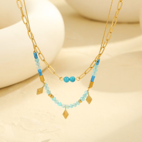 Retro natural stone beaded necklace niche double clavicle chain